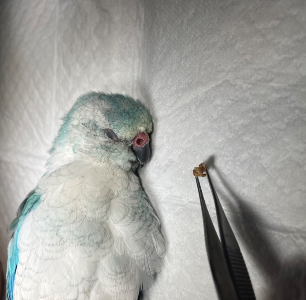 ヒョウモントカゲモドキの頬部切開後、排膿(2/2)